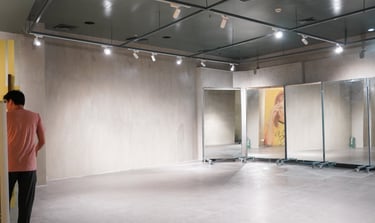 A dynamic pop-up dance studio designed for flexibility and style. With a complete fit-out renovation, we used industrial-inspired finishes—grey tones, cement textures, and bold yellow accents—to create a vibrant yet functional space. This project perfectly balances practicality and design, bringing energy and focus to the heart of the mall.