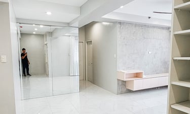 Revitalizing an old, colorful condo with bold, neutral tones to create a bright, modern space. We replaced outdated tiles, cabinets, and finishes, opening up the layout to maximize space and light. The result is a roomier, lighter unit that reflects the client's desire for a neutral, contemporary vibe—transforming a once-dull space into a welcoming home.