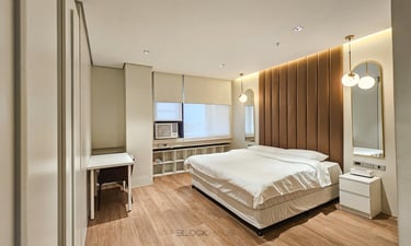 A complete transformation of a 40-year-old unit, balancing modern design with nostalgic elements. We tore down walls to create an open kitchen, replacing outdated finishes and piping. Special attention was given to senior-friendly features, ensuring no sudden steps and soft ramps for easy navigation. With neutral, airy tones, this space feels fresh yet familiar, making the most of its history while catering to the present.