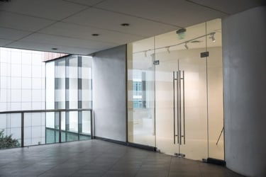 A modern, functional commercial building designed with maximum space utilization and airflow in mind. The full glass front creates an airy, open atmosphere, while perforated metal cladding ensures privacy and security. The grey tones and yellow accents give the building a modern edge, while the neutral, wooden interior finishes bring warmth to the spaces. The units are now all rented out, making this a successful project from both a design and business perspective.